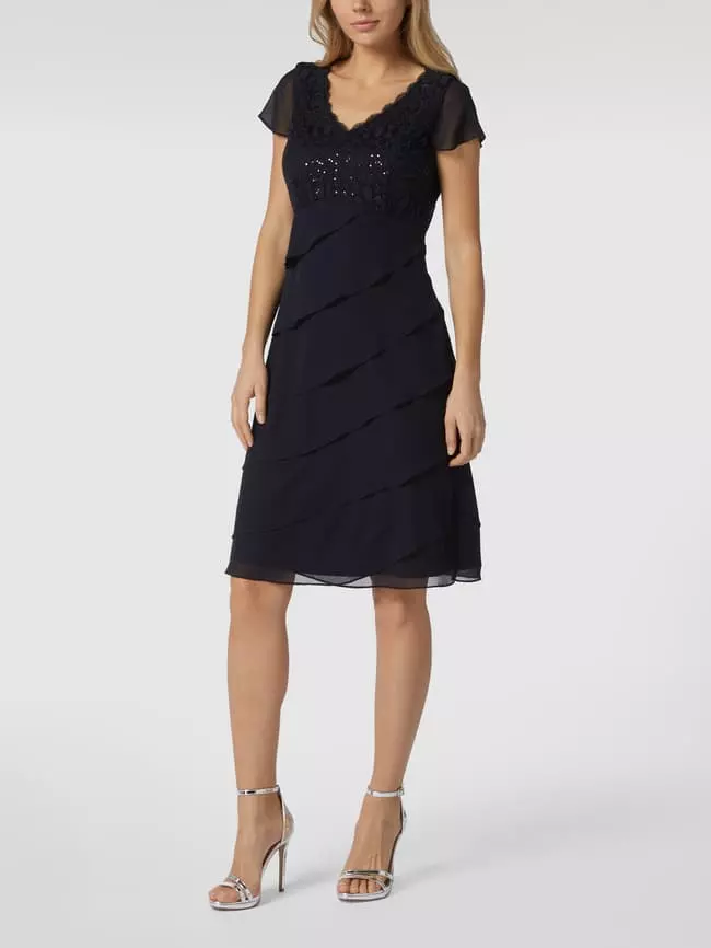 Christian Berg Cocktail Cocktailkleid Aus Spitze Und Chiffon – Marineblau Meliert