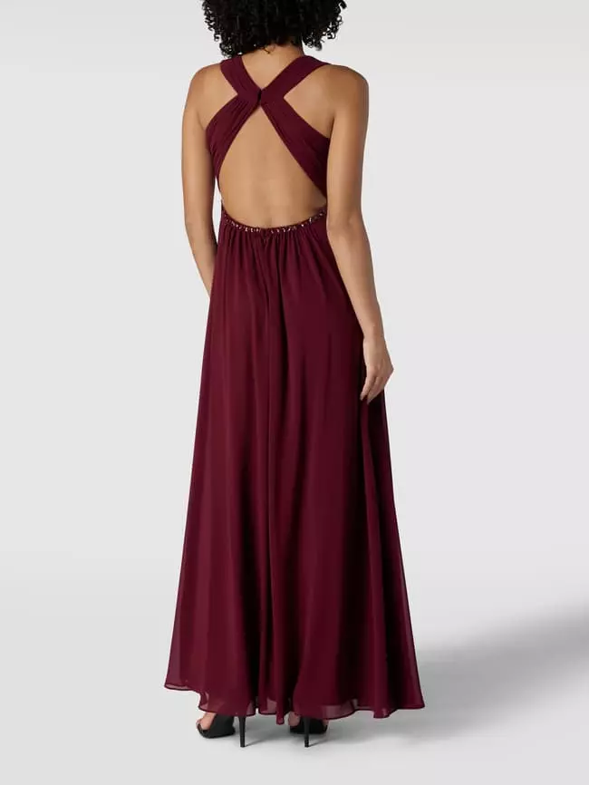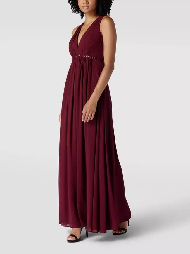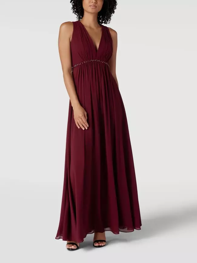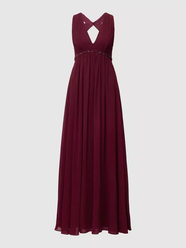 Jake*s Cocktail Abendkleid In Maxilänge Mit Zierbesatz – Kirschrot Meliert