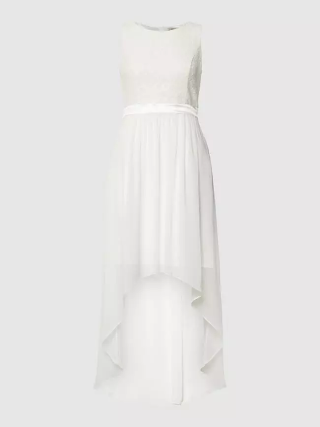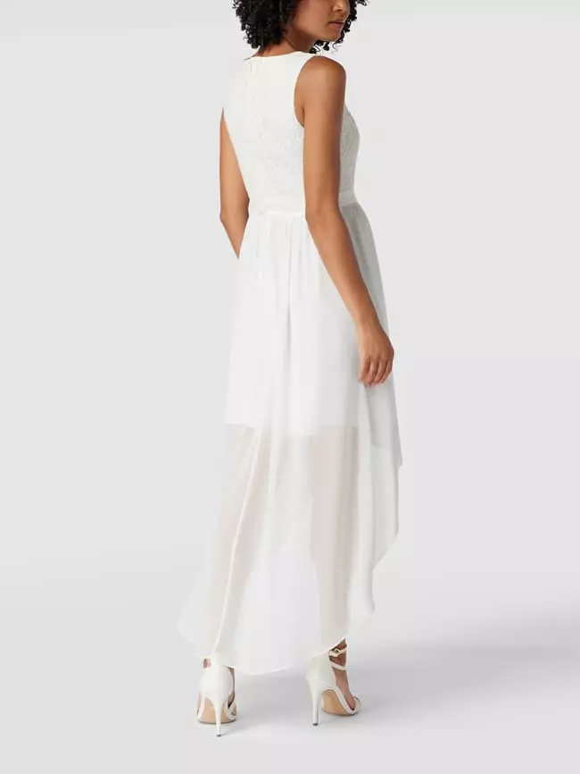 Das Cocktailkleid von Jake*s Cocktail ist aus einer Baumwollmischung gefertigt und gerade geschnitten. Es kommt in Maxilänge und im Vokuhila-Stil, mit Paillettenbesatz und floraler Spitze.