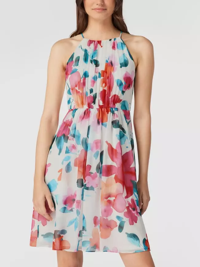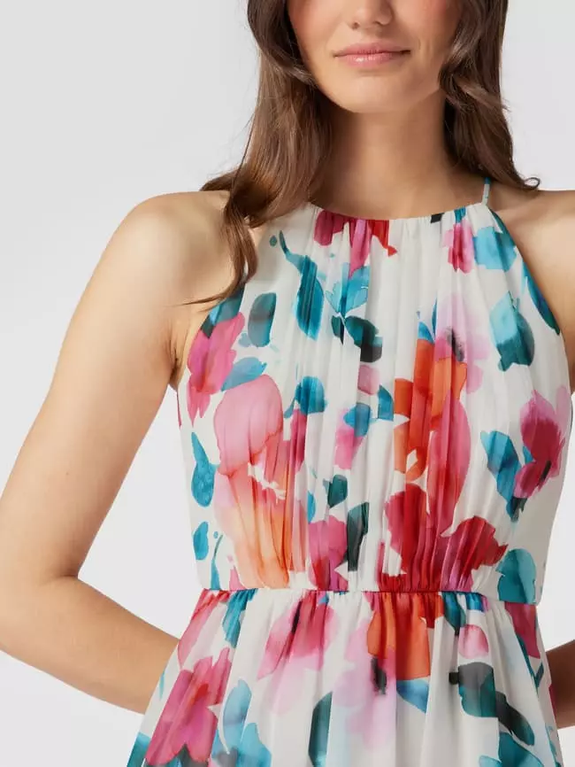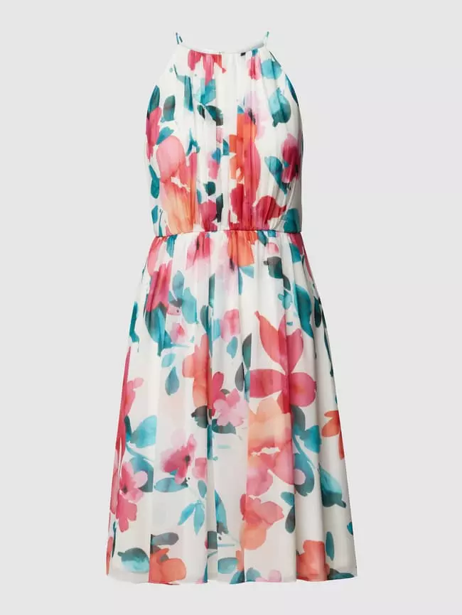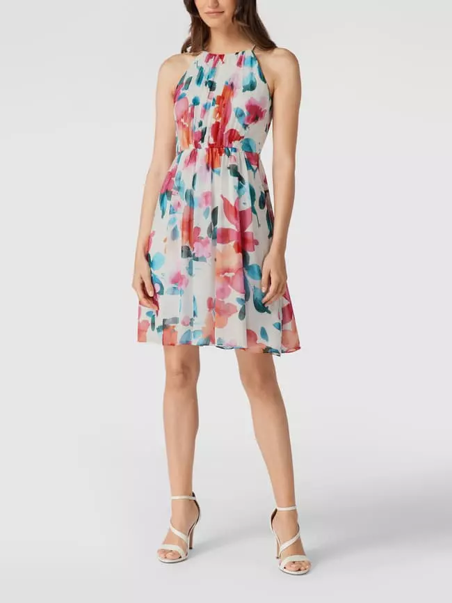 Das Cocktailkleid von Jake*s Cocktail ist aus strapazierfähigem Material gefertigt und tailliert geschnitten. Es kommt mit floralem Muster, amerikanischem Ausschnitt und Raffungen.