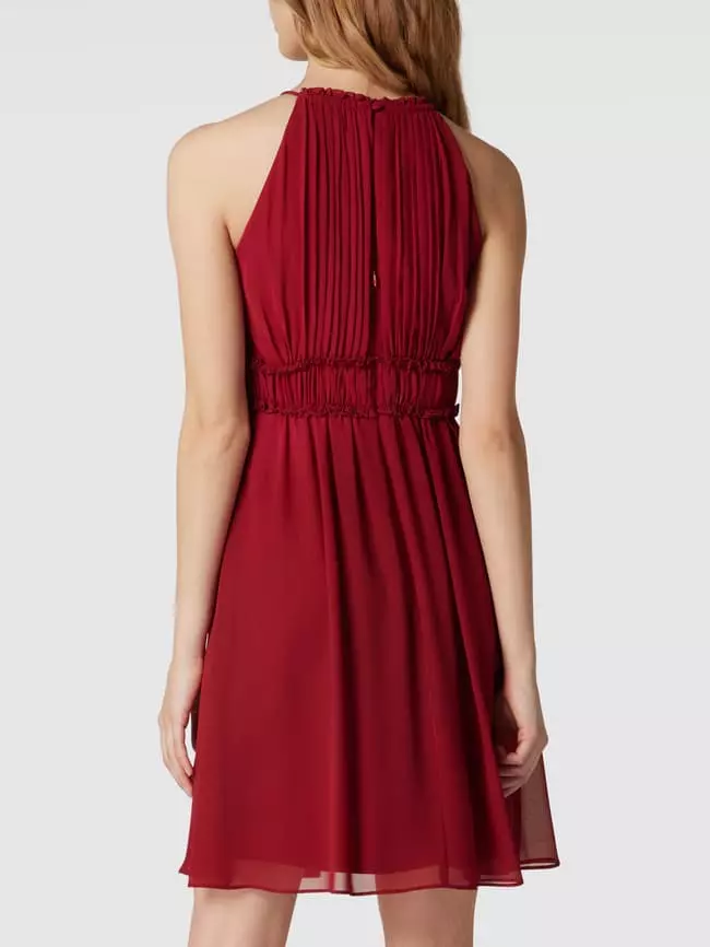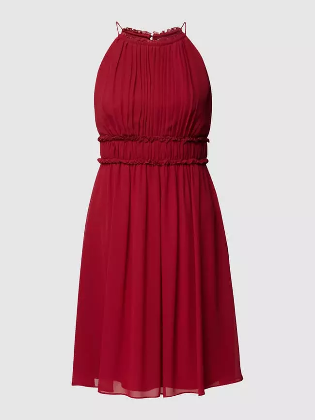 Das Cocktailkleid von Jake*s Cocktail ist aus strapazierfähigem Material gefertigt und gerade geschnitten. Es zeigt sich mit Plisseefalten und Details mit Muschelsaum sowie Neckholder mit Tunnelzug.