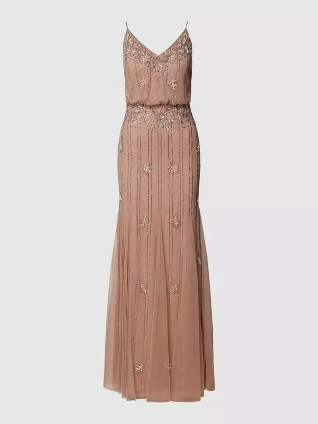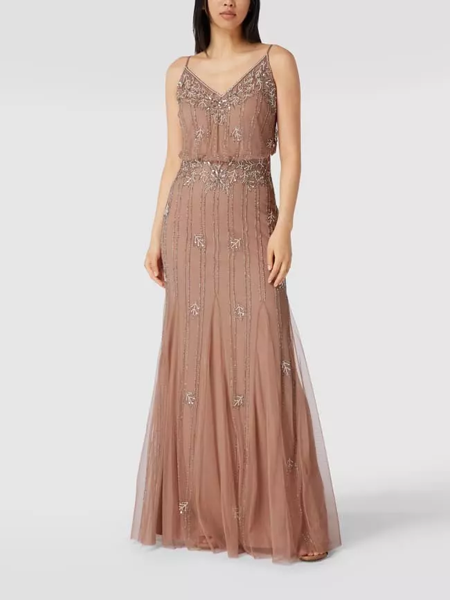 Das Abendkleid von Lace & Beads ist aus strapazierfähigem Material gefertigt und tailliert geschnitten. Es zeigt sich mit schmalen Trägern, V-Ausschnitt sowie Besatz aus Pailletten und Ziersteinen.