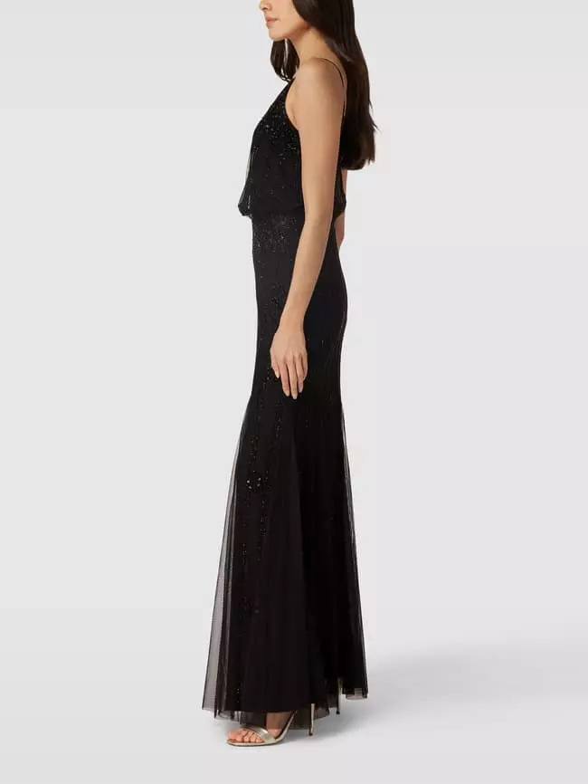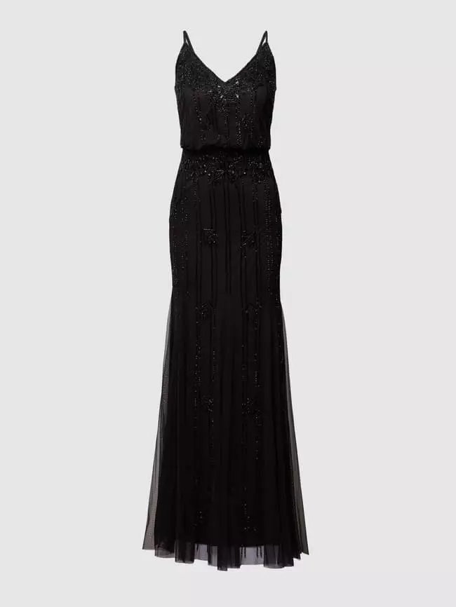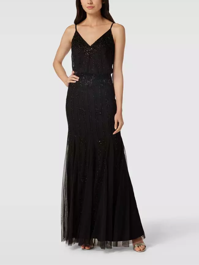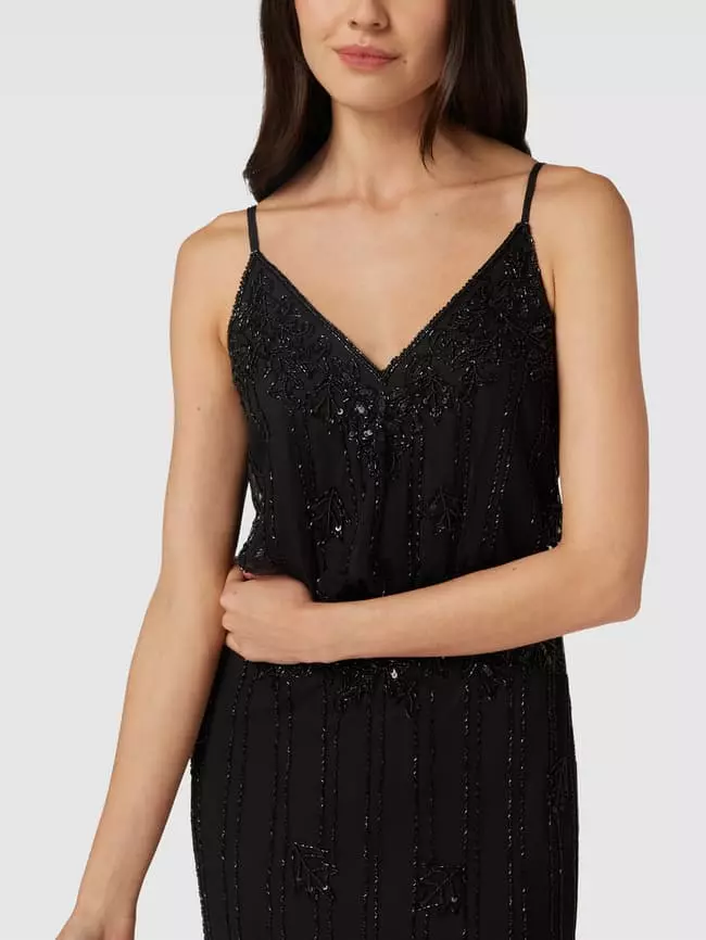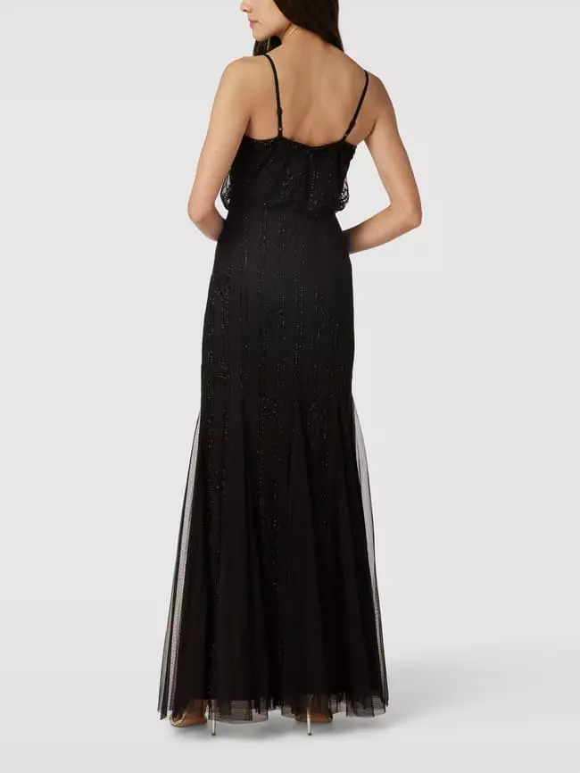 Das Abendkleid von Lace & Beads ist aus strapazierfähigem Material gefertigt und tailliert geschnitten. Es zeigt sich mit schmalen Trägern, V-Ausschnitt sowie Besatz aus Pailletten und Ziersteinen.