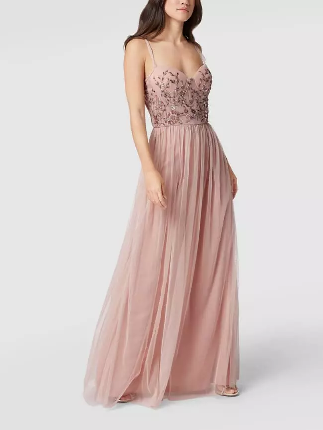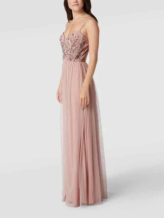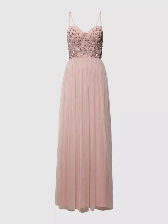 Das Abendkleid von Lace & Beads ist aus einem strapazierfähigen Material gefertigt und tailliert geschnitten. Es zeigt sich mit Herz-Ausschnitt, geformten Cups und floralem Pailletten- und Ziersteinbesatz.