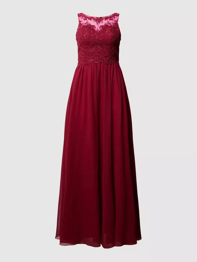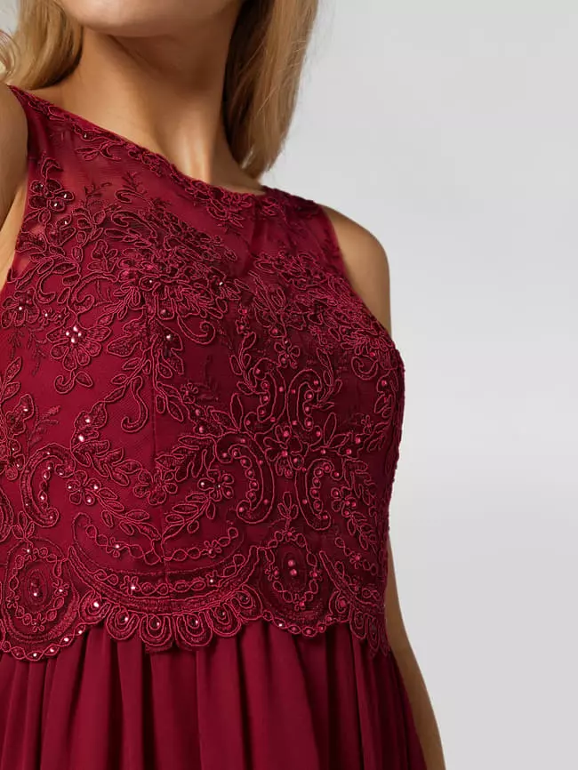 Laona Abendkleid Aus Chiffon Mit Ziersteinen – Kirschrot