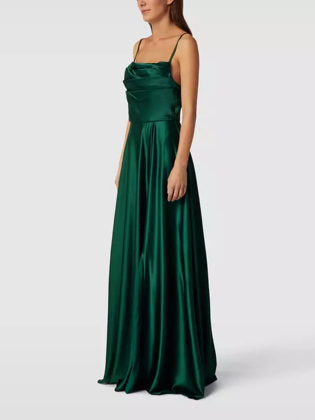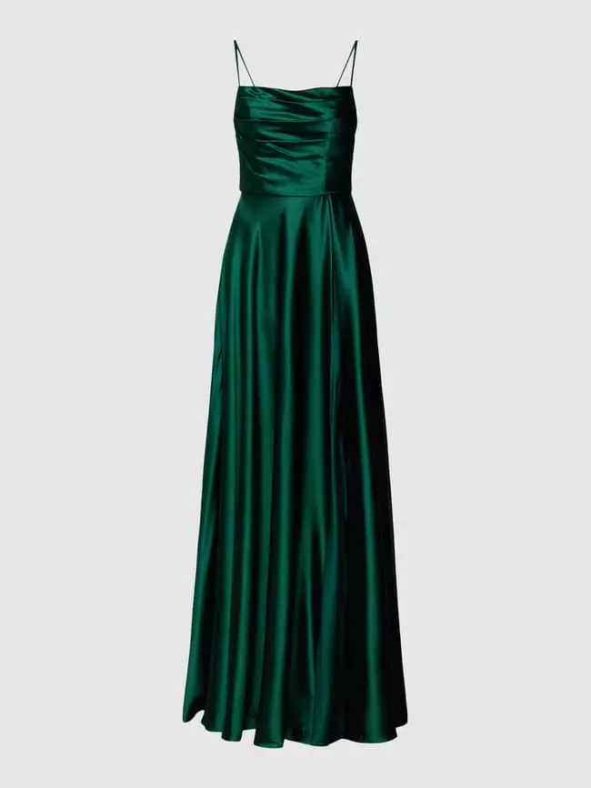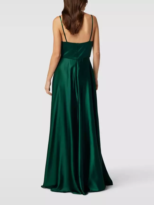 Das Abendkleid von LAONA ist aus strapazierfähigem Material gefertigt und ausgestellt geschnitten. Es kommt in Wickel-Optik mit Spaghettiträgern und Gehschlitz.