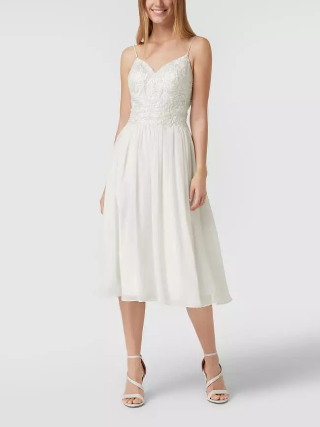 Das Brautkleid von LAONA ist aus strapazierfähigem Material gefertigt und tailliert geschnitten. Es kommt mit Spaghettiträgern, Herzausschnitt und Zierbesatz sowie ausgestellter Rockpartie.