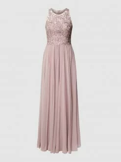 Das Cocktailkleid von LAONA ist aus strapazierfähigem Material gefertigt und tailliert geschnitten. Es kommt mit Rundhalsausschnitt, Strasssteinbesatz, floraler Spitze und rückseitigem Reißverschluss.