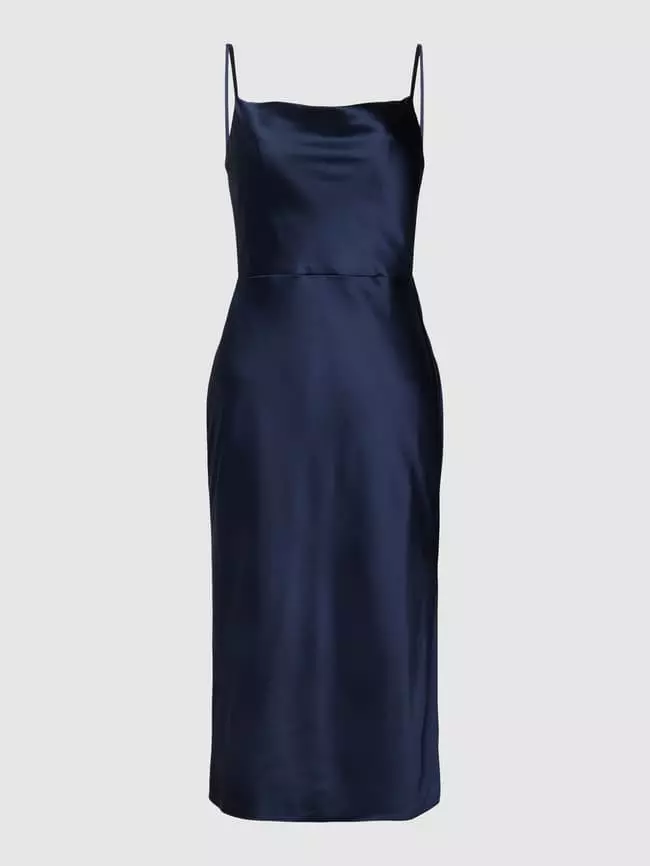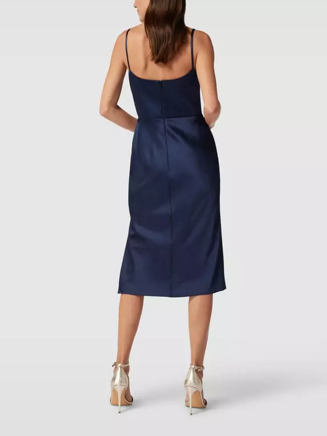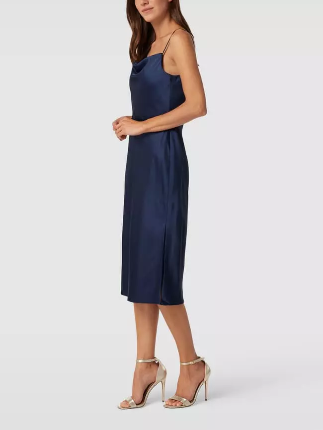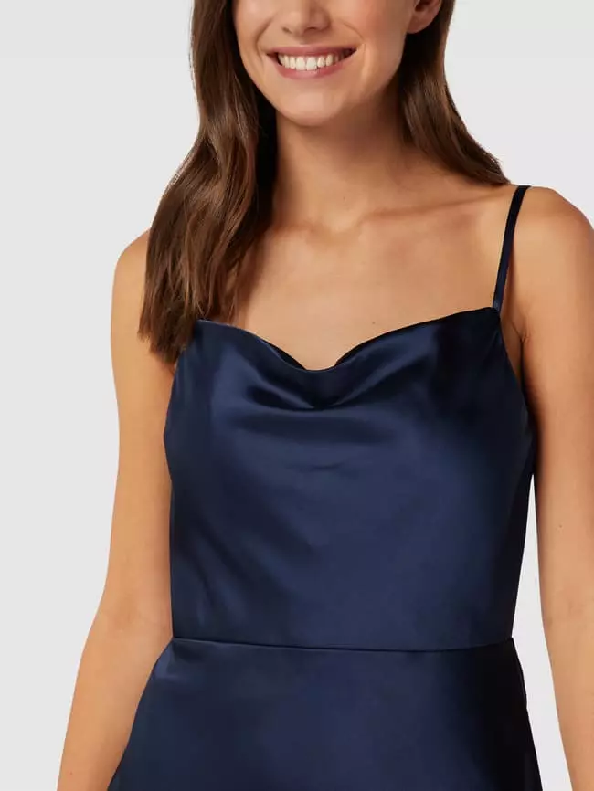 Das Cocktailkleid von LAONA ist aus strapazierfähigem Material gefertigt und tailliert geschnitten. Es kommt mit Wasserfall-Ausschnitt und Spaghettiträgern.
