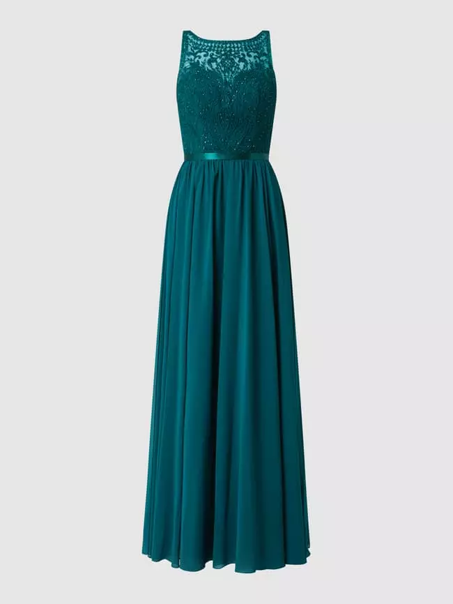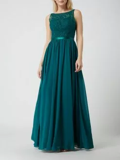 Luxuar Abendkleid Mit Floralen Stickereien – Dunkelgrün