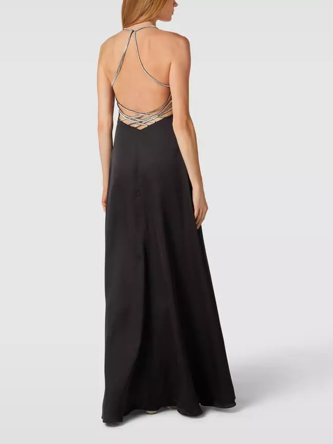 Luxuar Abendkleid Mit Strasssteinbesatz – Schwarz