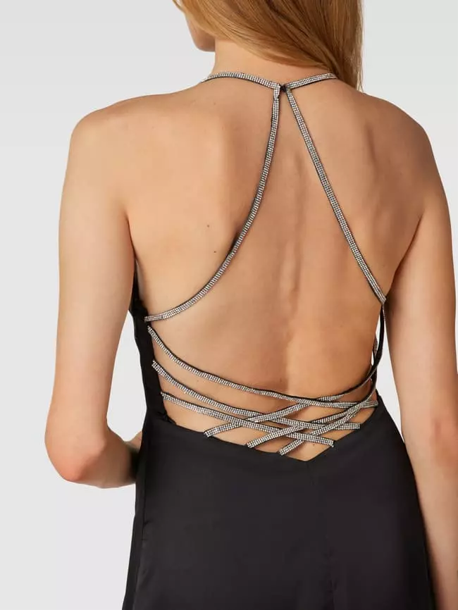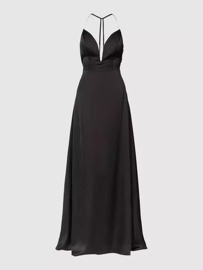 Das Abendkleid von LUXUAR FASHION ist aus strapazierfähigem Material gefertigt und tailliert geschnitten. Es kommt mit Strasssteinbesatz, Herz-Ausschnitt und Spaghettiträgern.
