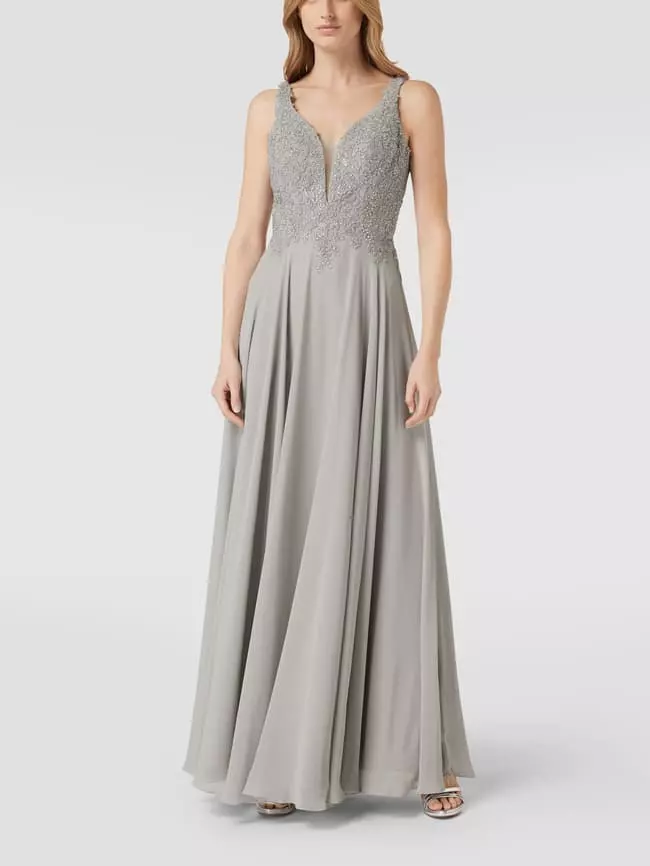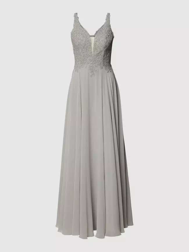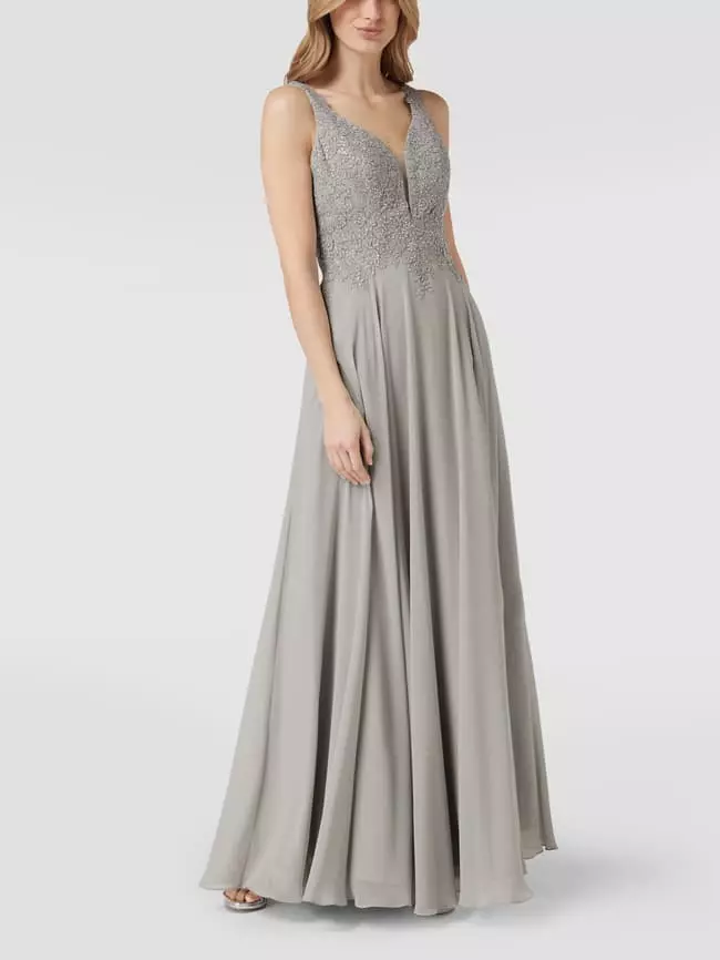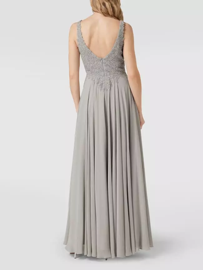 Luxuar Abendkleid Mit Zierbesatz – Mittelgrau