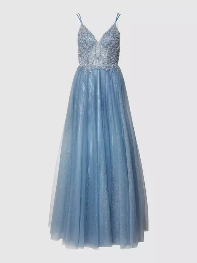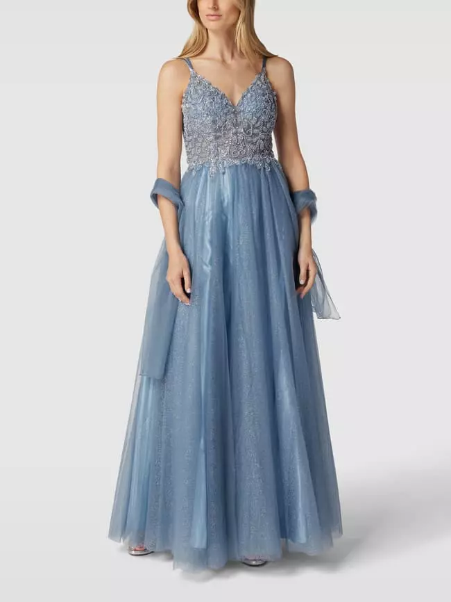 Luxuar Abendkleid Mit Zierbesatz – Rauchblau