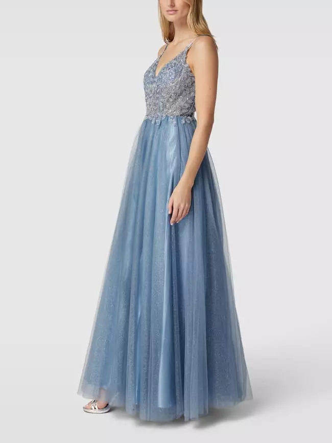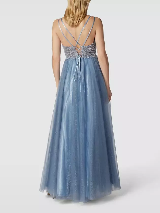 Das Abendkleid von LUXUAR FASHION ist aus strapazierfähigem Material gefertigt und tailliert geschnitten. Es kommt mit Zierbesatz, ausgestellter Rockpartie und Schnürung.