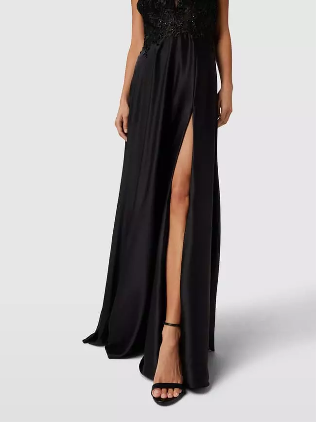 Das Abendkleid von LUXUAR FASHION ist aus einem strapazierfähigen Material gefertigt und tailliert geschnitten. Es zeigt sich in unifarbenem Design sowie mit Ziersteinbesatz.