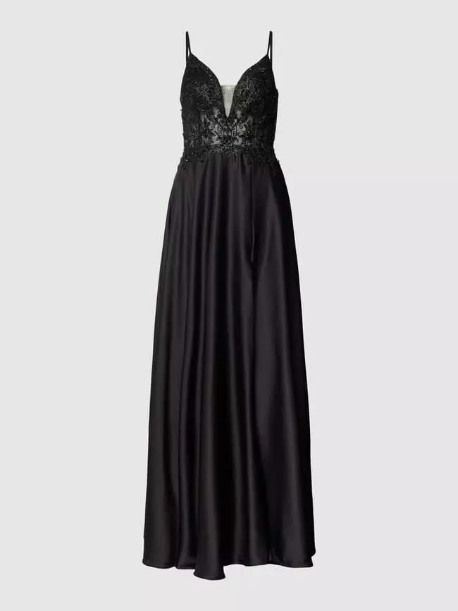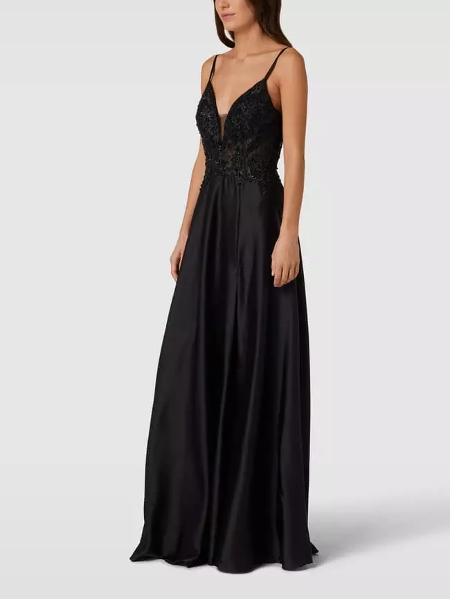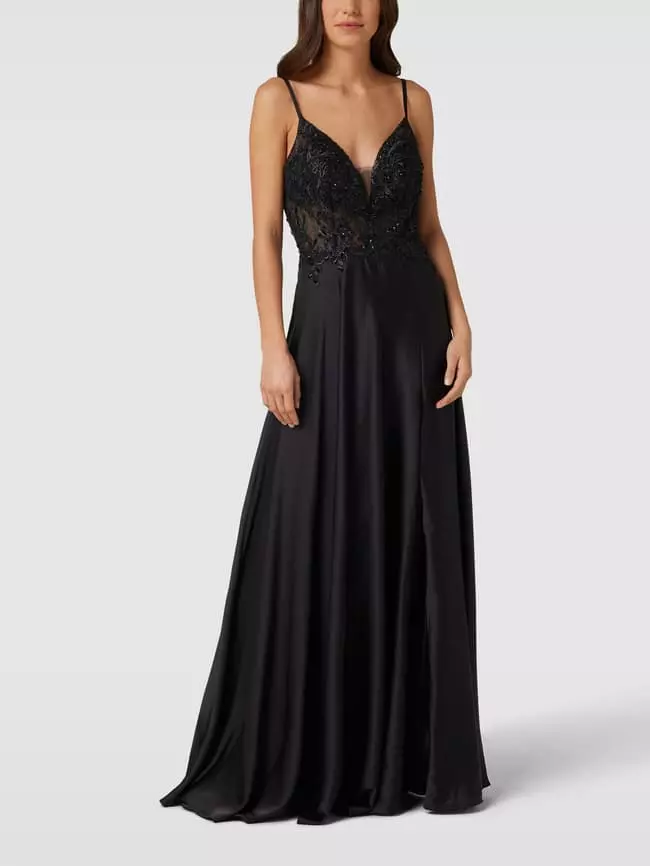 Luxuar Abendkleid Mit Ziersteinbesatz – Schwarz