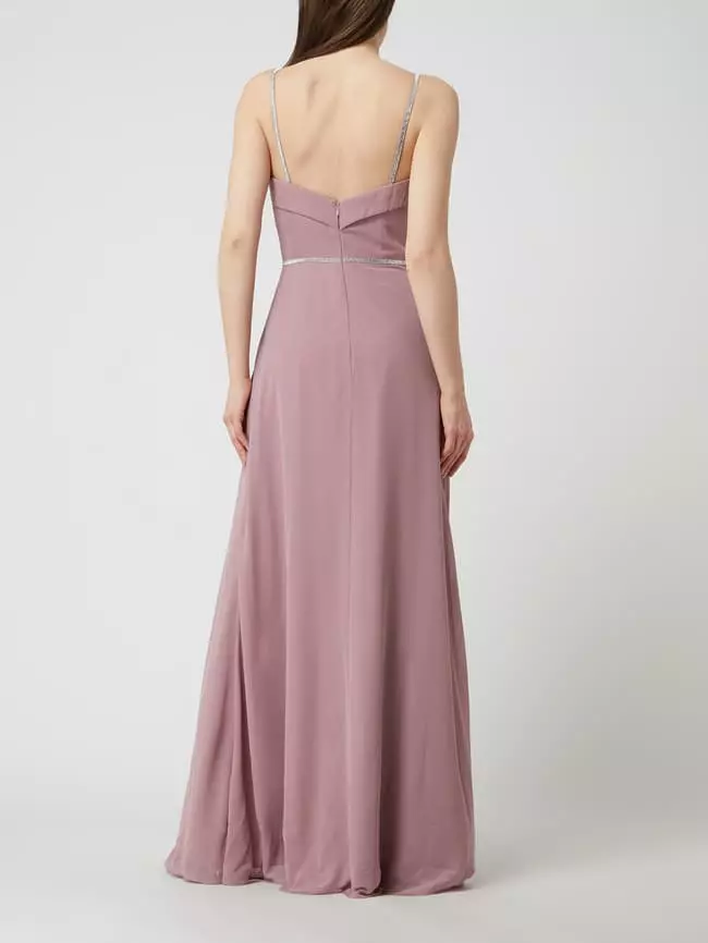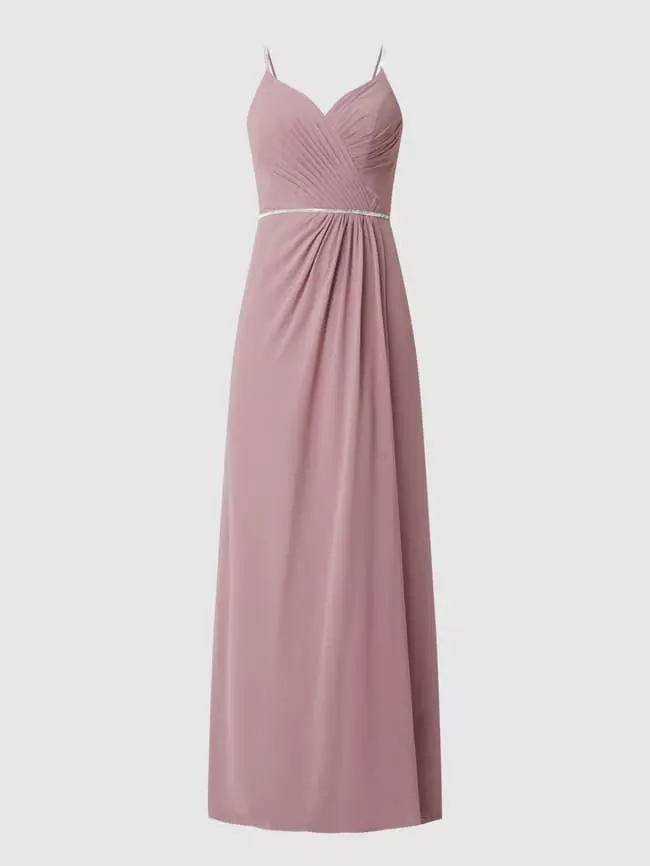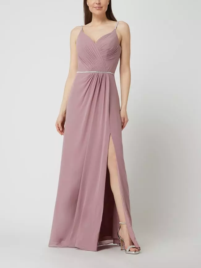 Das Abendkleid von LUXUAR FASHION ist aus strapazierfähigem Material gefertigt und tailliert geschnitten. Es kommt mit Spaghettiträgern, Raffungen und Herzausschnitt sowie Ziersteinen.