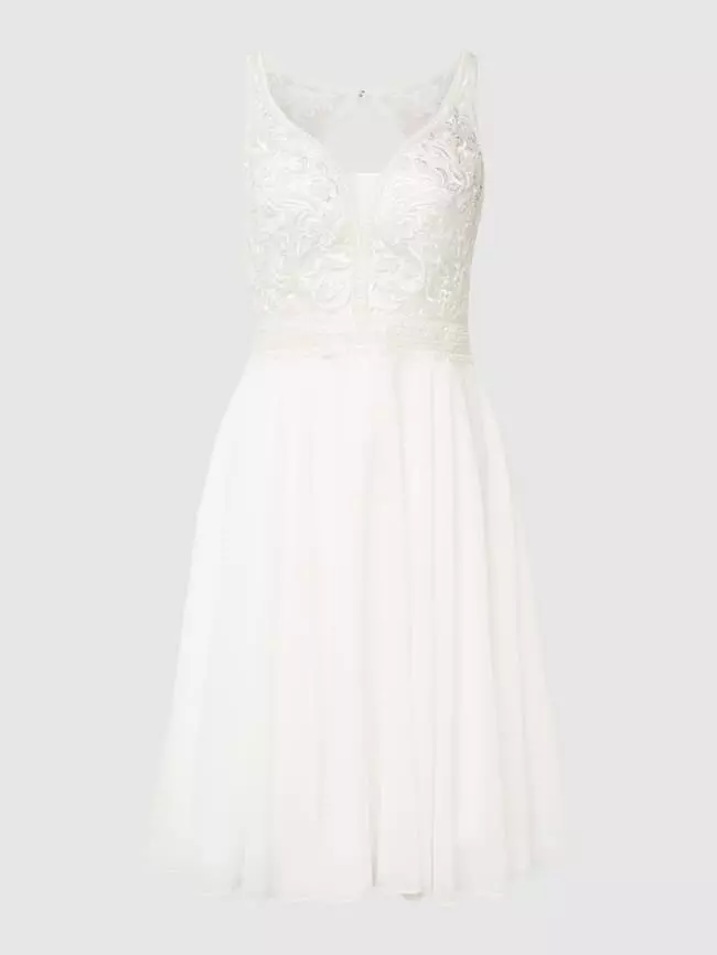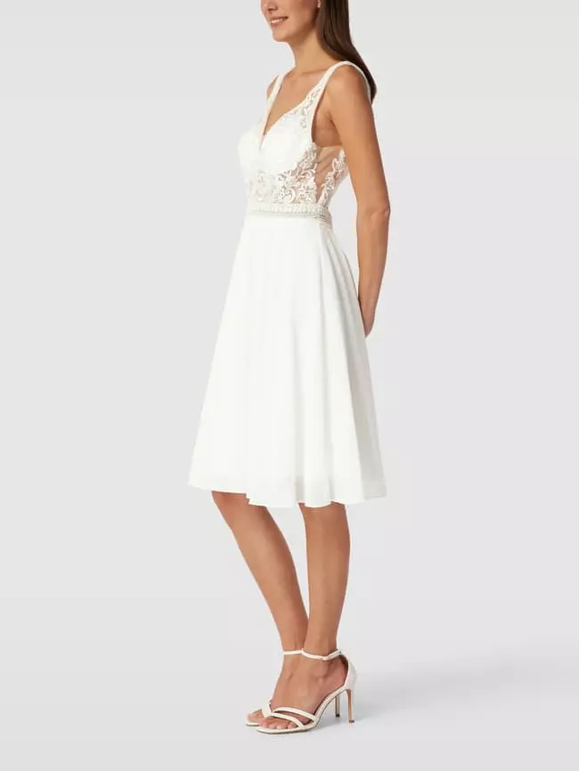 Das Brautkleid von LUXUAR FASHION ist aus einem strapazierfähigen Material gefertigt und im taillierten Schnitt gehalten. Es zeigt sich in unifarbenem Design aus Häkelspitze und mit Herz-Ausschnitt.