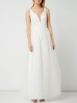 Luxuar Brautkleid Aus Mesh Mit Floralen Stickereien – Offwhite