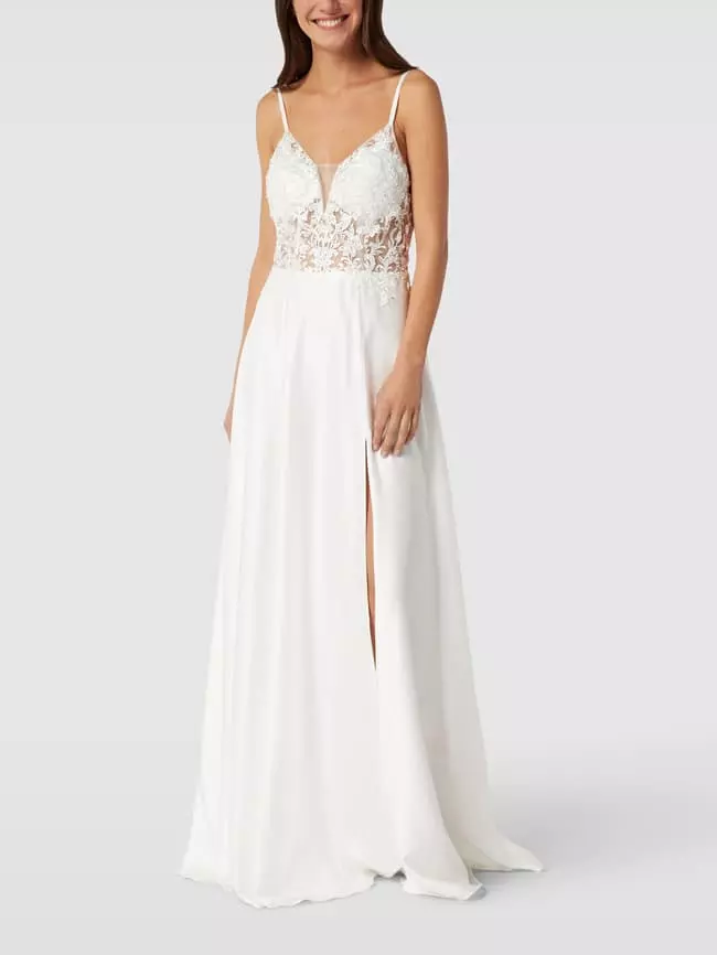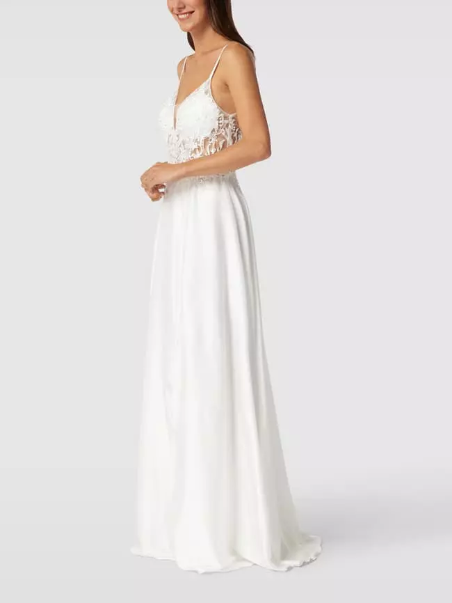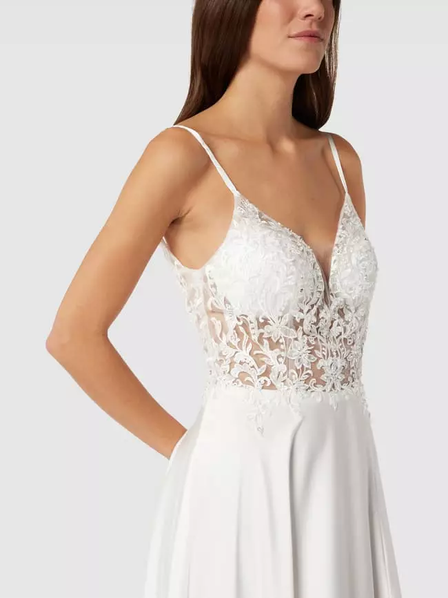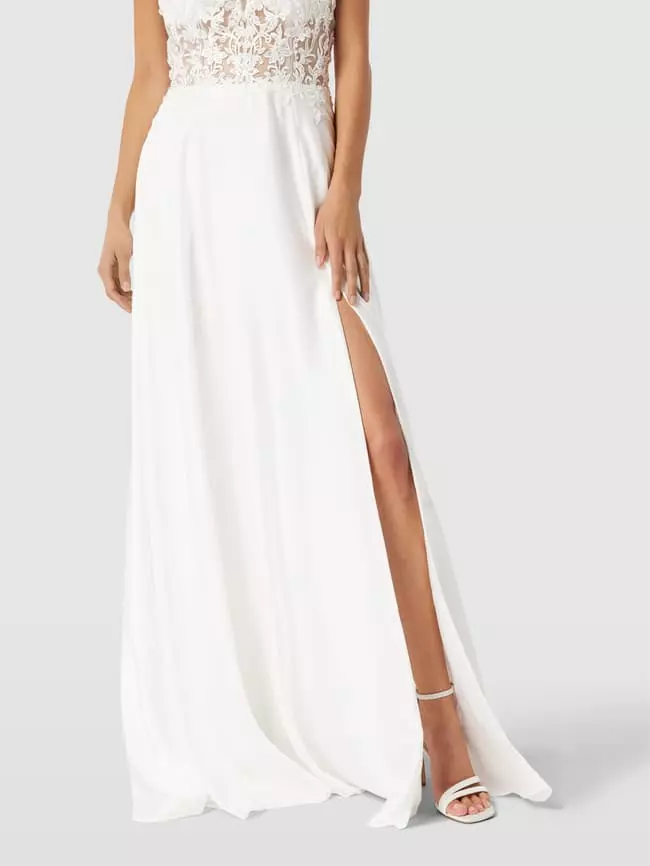 Das Brautkleid von LUXUAR FASHION ist aus einem strapazierfähigen Material gefertigt und tailliert geschnitten. Es zeigt sich im unifarbenen Design mit Details aus Spitze.