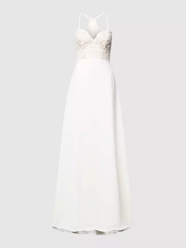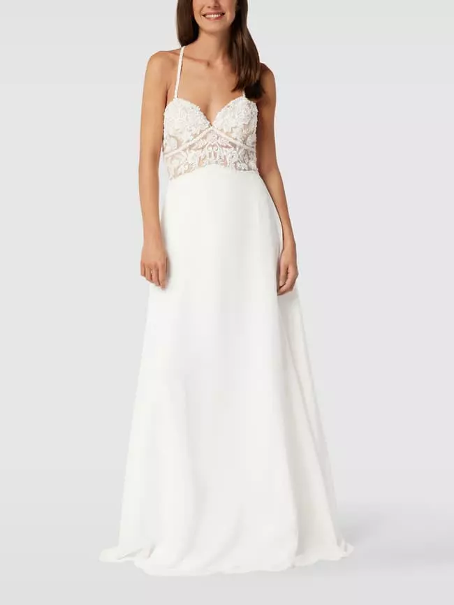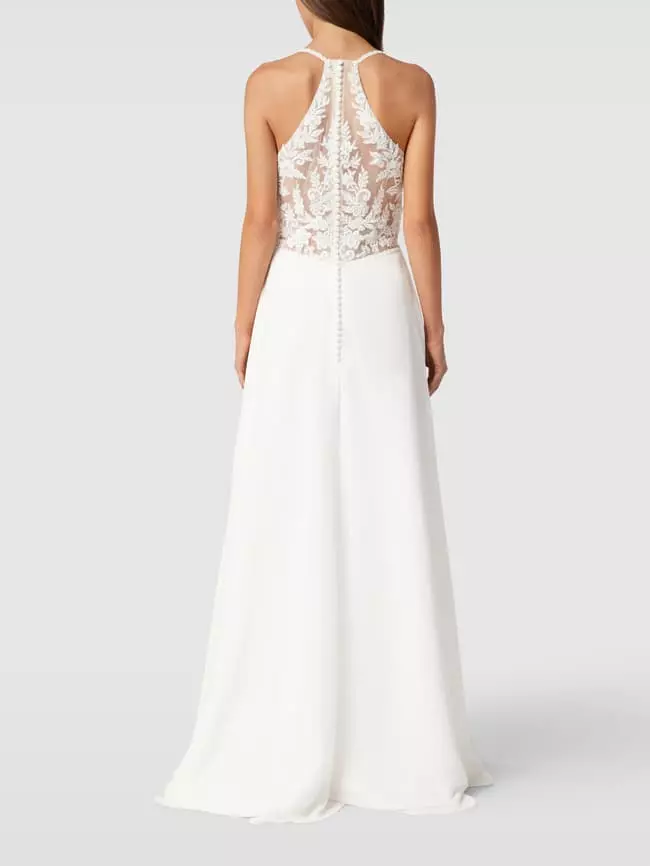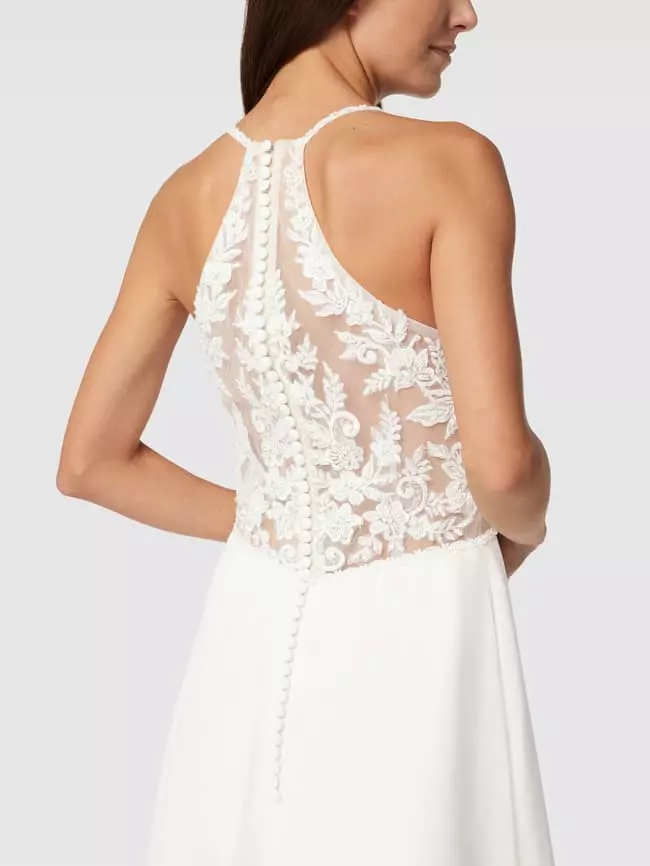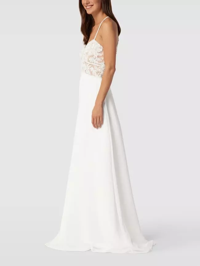 Das Brautkleid von LUXUAR FASHION ist aus einem strapazierfähigen Material gefertigt und tailliert geschnitten. Es zeigt sich im unifarbenen Design mit Details aus Spitze.