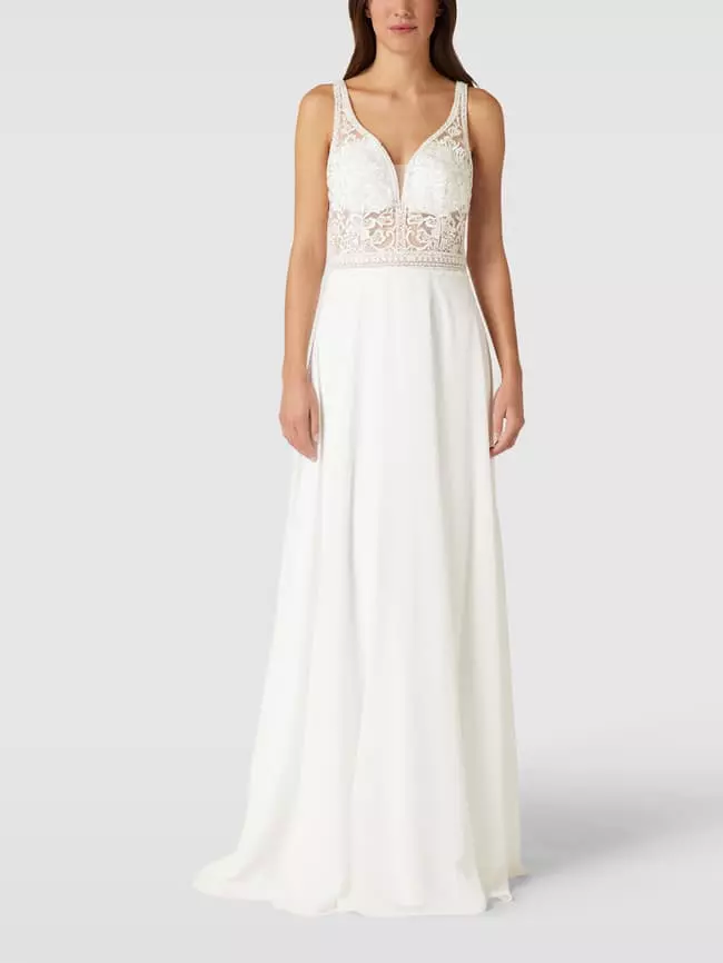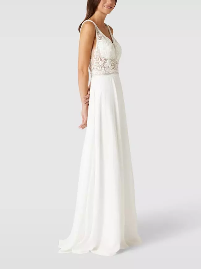 Das Brautkleid von LUXUAR FASHION ist aus einem strapazierfähigen Material gefertigt und tailliert geschnitten. Es zeigt sich mit Herz-Ausschnitt und Taillenpasse.