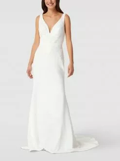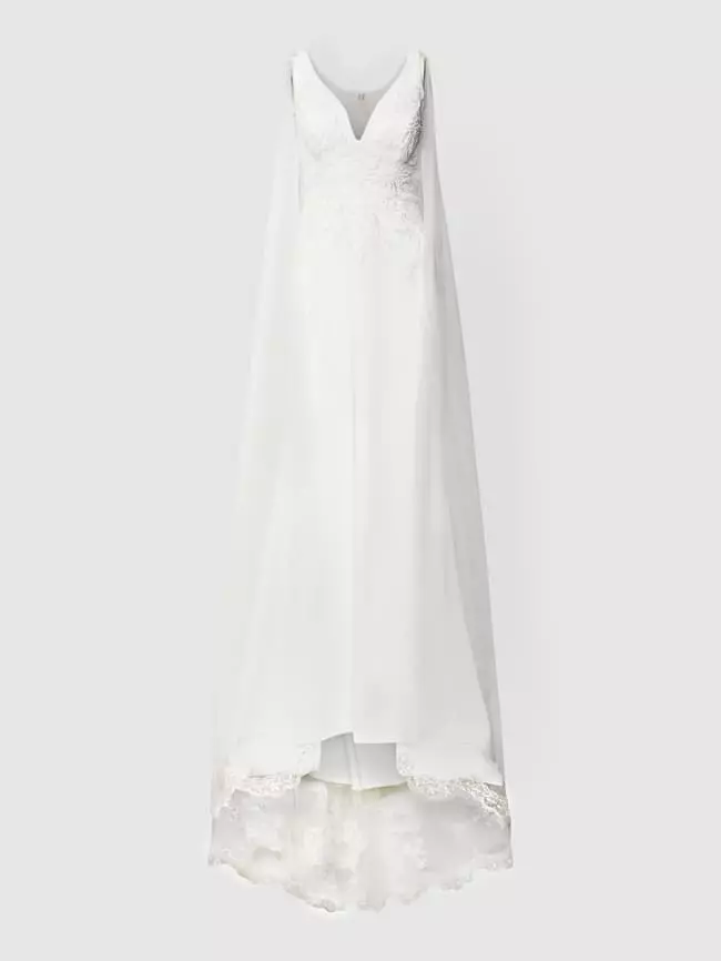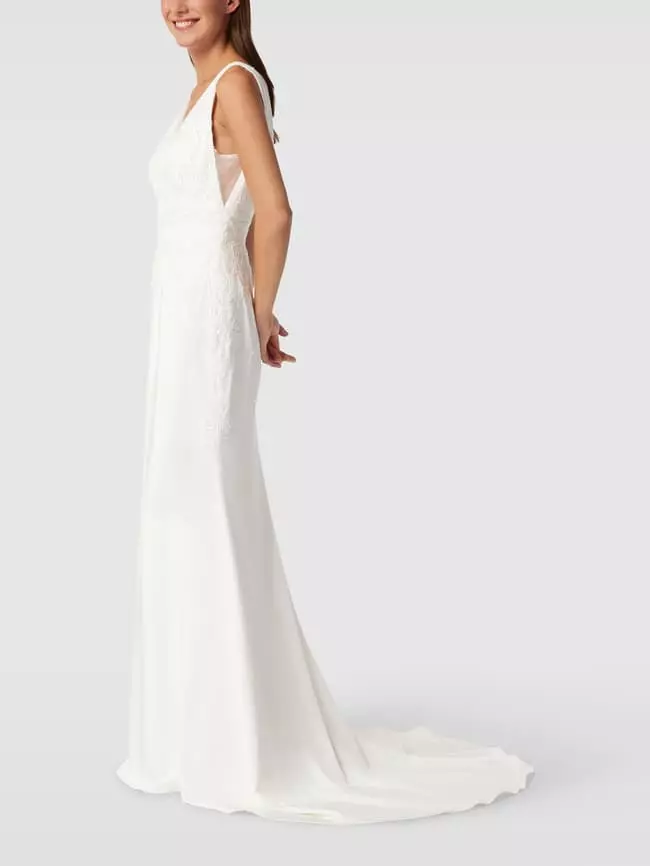 Das Brautkleid von LUXUAR FASHION ist aus einem strapazierfähigen Material gefertigt und im taillierten Schnitt gehalten. Es zeigt sich in unifarbenem Design mit Zierbesatz und V-Ausschnitt.