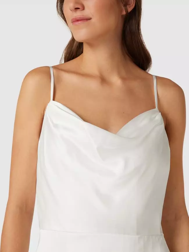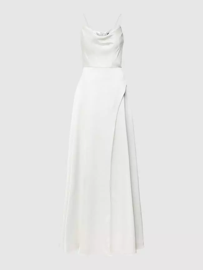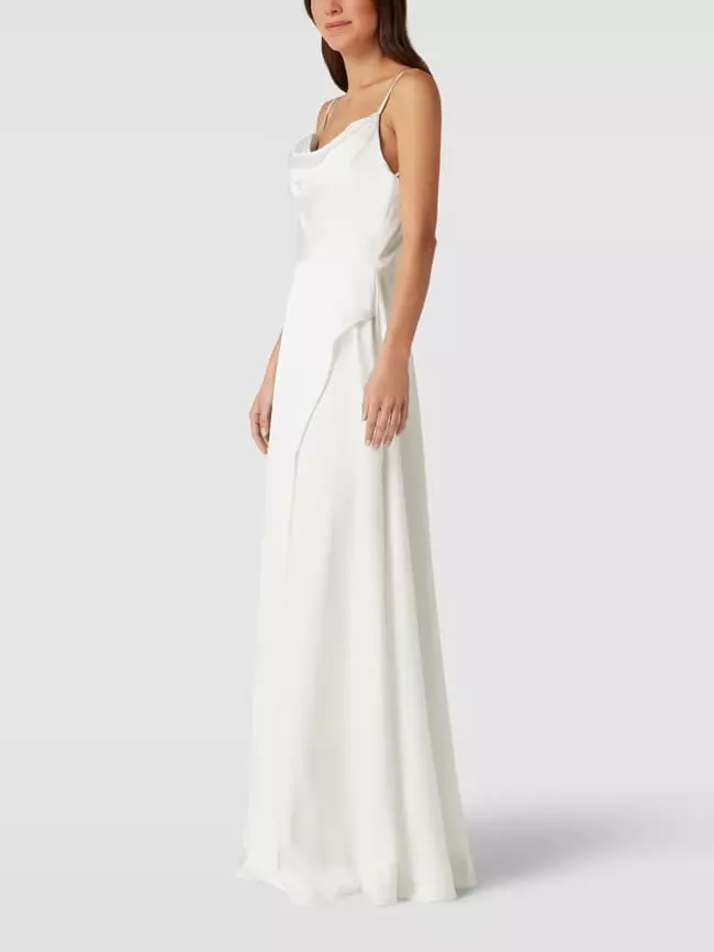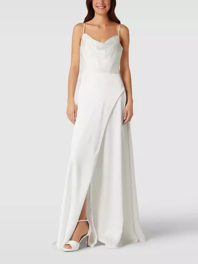 Das Brautkleid von LUXUAR FASHION ist aus einem strapazierfähigen Material gefertigt und im taillierten Schnitt gehalten. Es zeigt sich in unifarbenem Design sowie mit Wasserfall-Ausschnitt und Spaghettiträger.