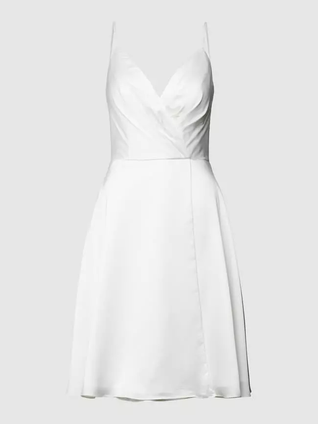 Das Cocktailkleid von LUXUAR FASHION ist aus einem strapazierfähigen Material gefertigt und tailliert geschnitten. Es zeigt sich in Wickel-Optik mit Spaghettiträgern.