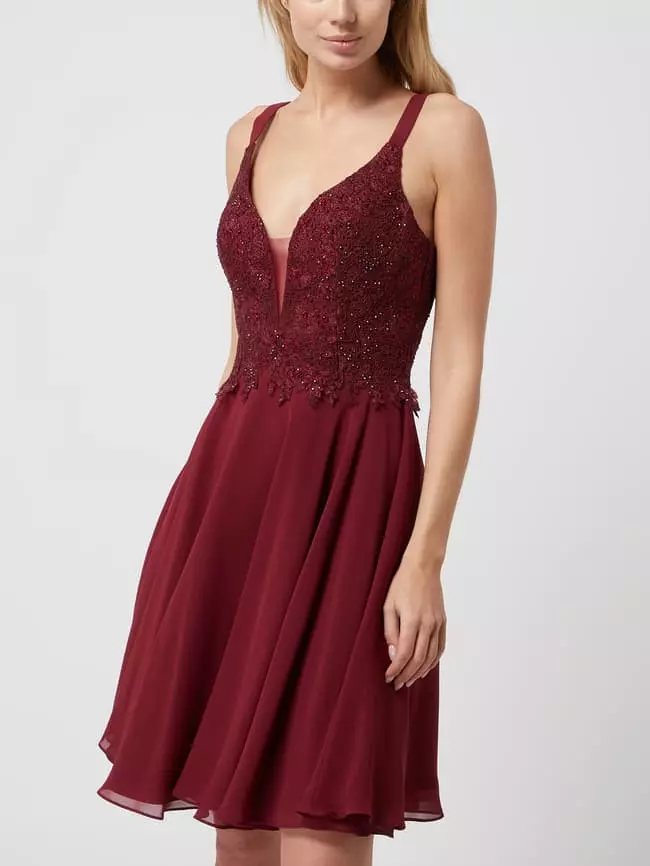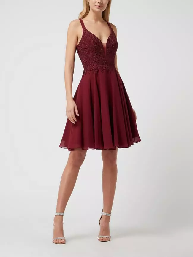 Luxuar Cocktailkleid Mit Herz-Ausschnitt – Dunkelrot