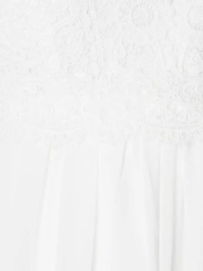 Das Umstandsbrautkleid von LUXUAR MAGIC BRIDE ist aus Häkelspitze und Chiffon gefertigt. Es zeigt sich in ausgestellter Passform mit tiefem Ausschnitt, Raffungen und schimmernden Zierknöpfen. Das Modell eignet sich perfekt für diejenigen, die von einem Brautkleid im Boho-Stil träumen.