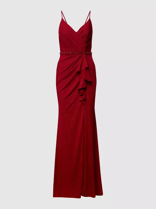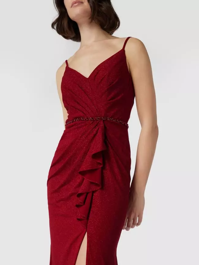 Das Abendkleid von Mascara ist aus strapazierfähigem Material gefertigt und tailliert geschnitten. Es kommt mit Glitter-Effekt, schmalen Trägern, Drapierung sowie Taillenpasse mit Ziersteinbesatz.