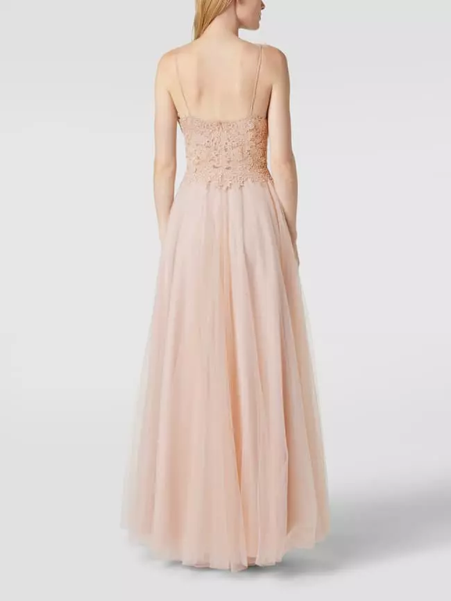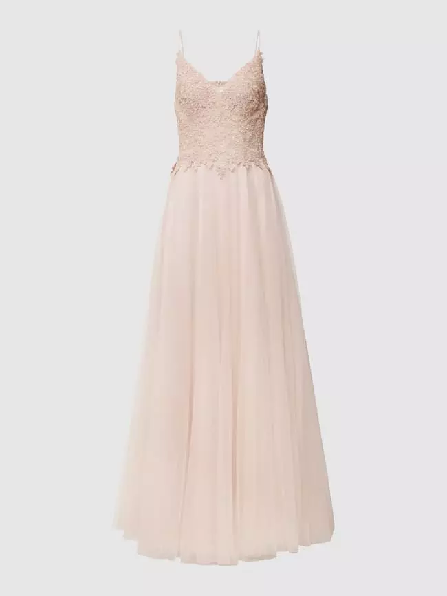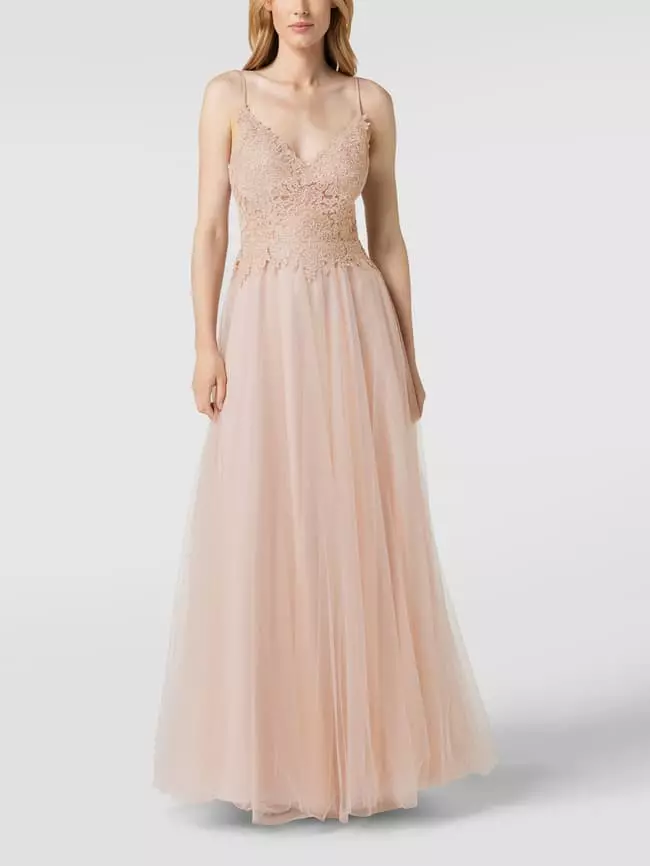 Das Abendkleid von Mascara ist aus strapazierfähigem Material gefertigt und tailliert geschnitten. Es kommt mit Zierbesatz, wattierten Cups und Herz-Ausschnitt sowie Spaghettiträgern.