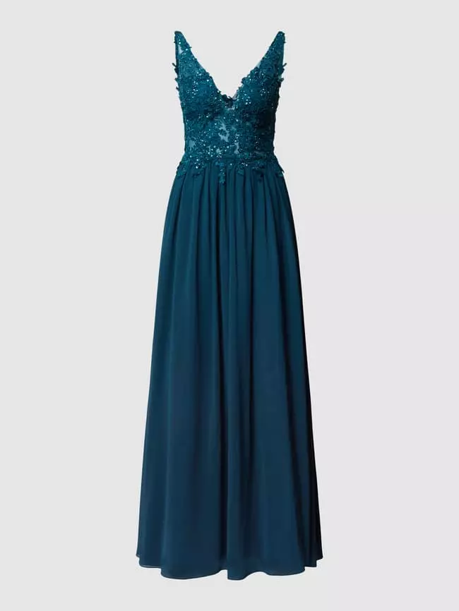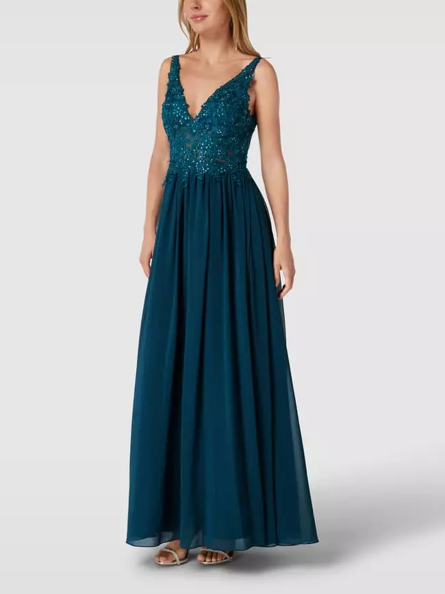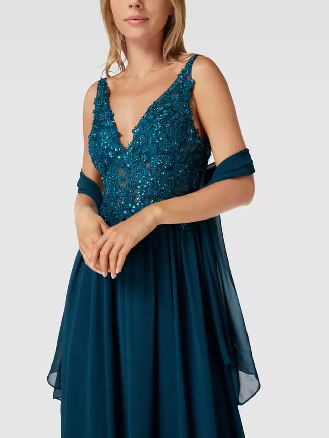 Mascara Abendkleid Mit Zierbesatz – Petrol