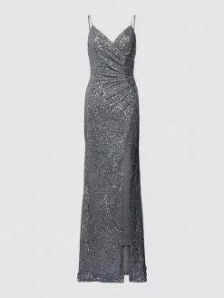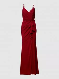 Das Brautkleid von Mascara ist aus strapazierfähigem Material gefertigt und tailliert geschnitten. Es kommt mit Herzausschnitt, floraler Spitze und semitransparentem Obermaterial.