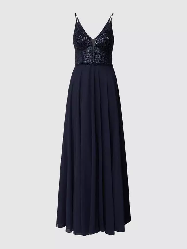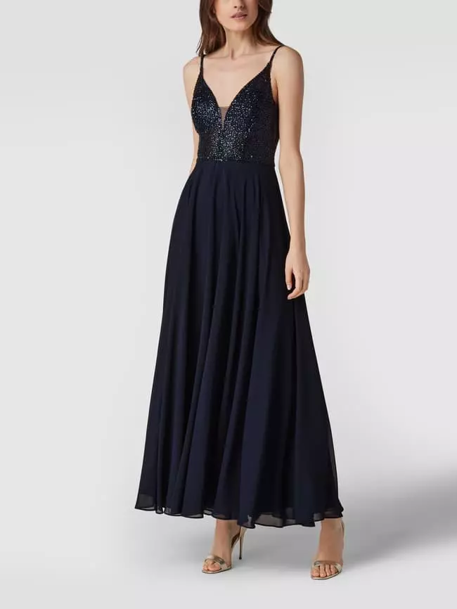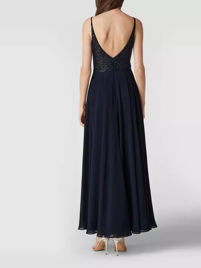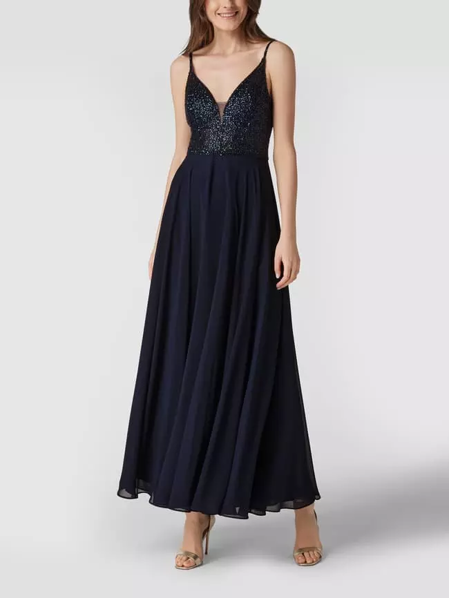 Swing Abendkleid Mit Paillettenbesatz – Marineblau