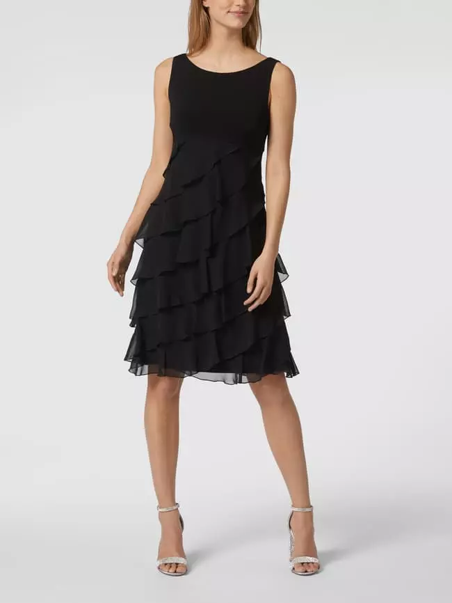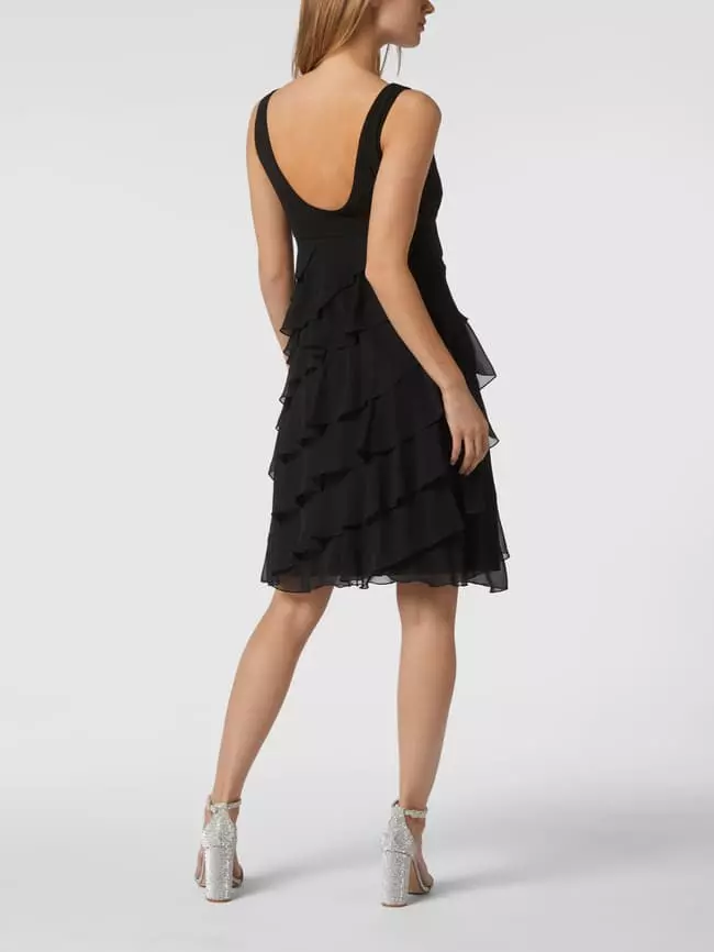 Swing Cocktailkleid Aus Chiffon Im Stufen-Look – Schwarz