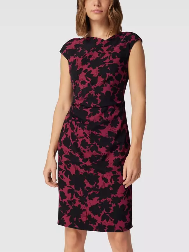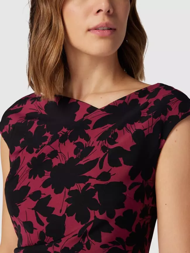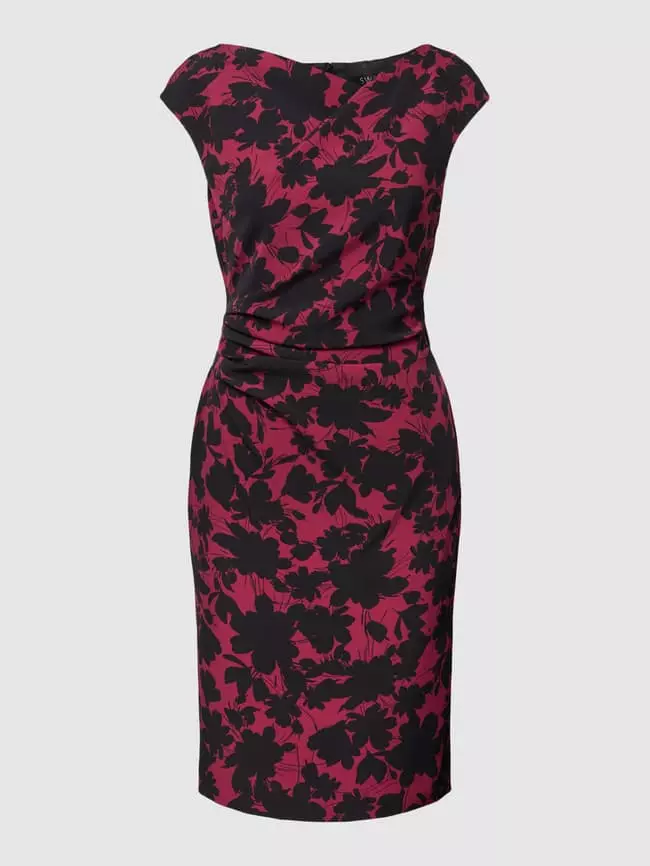 Das Cocktailkleid von SWING ist aus einem Material-Mix mit Stretch-Anteil gefertigt und tailliert geschnitten. Es zeigt sich mit Allover-Muster und Rundhalsausschnitt.