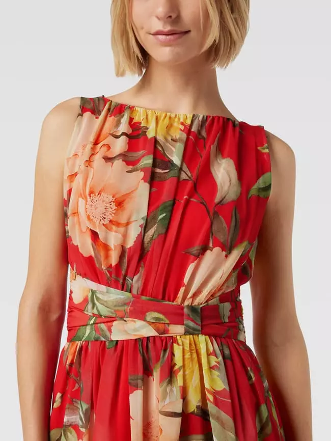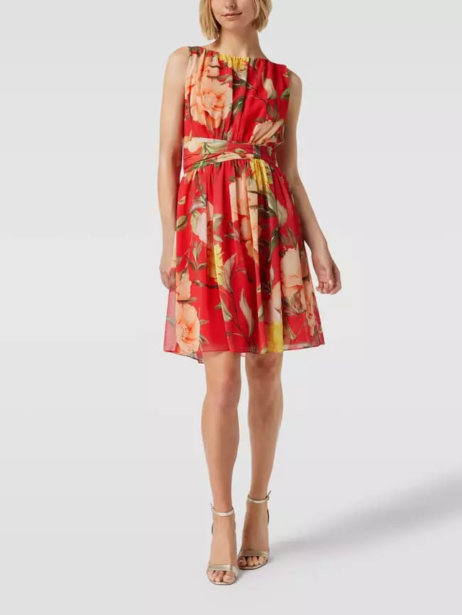 Swing Cocktailkleid Mit Floralem Allover-Muster – Koralle