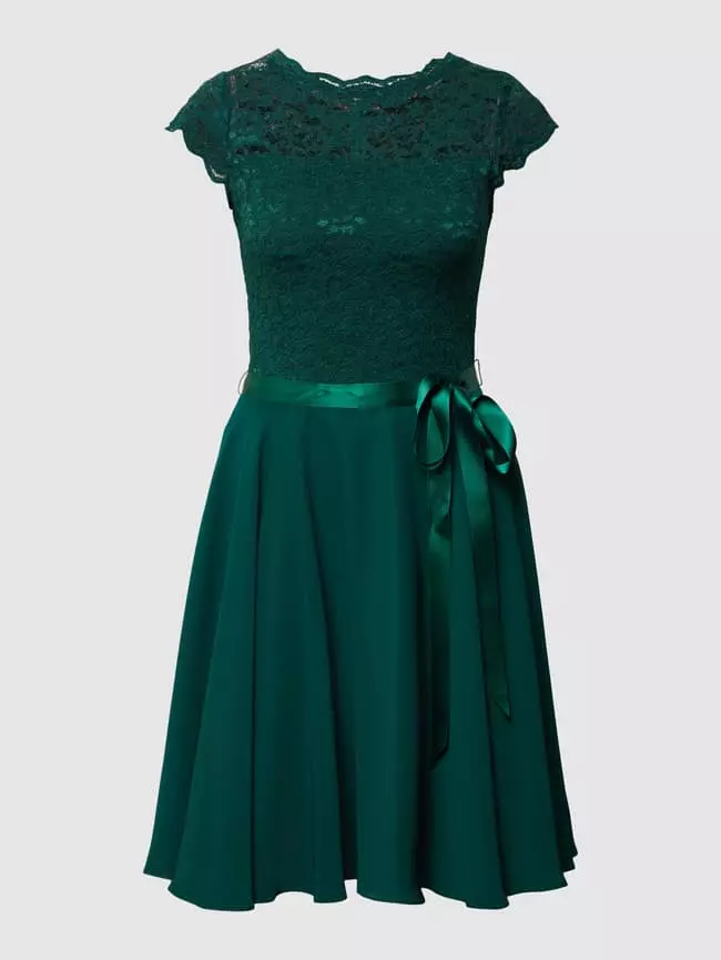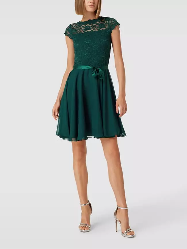 Swing Cocktailkleid Mit Floraler Spitze – Dunkelgrün