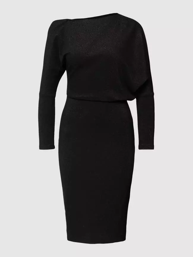 Swing Knielanges Cocktailkleid Mit Effektgarn – Schwarz