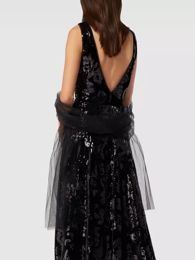 Unique Abendkleid Mit Paillettenbesatz – Schwarz