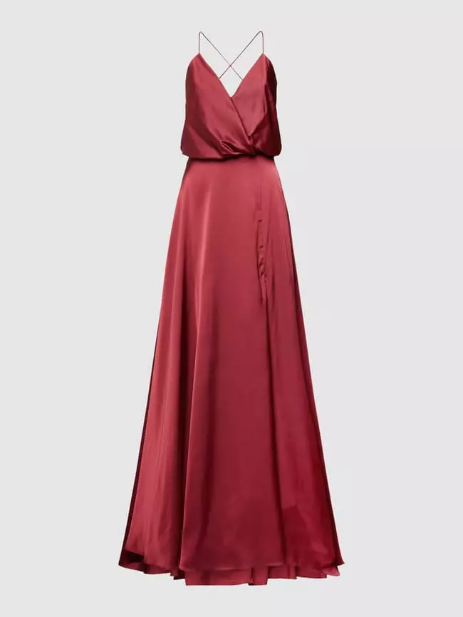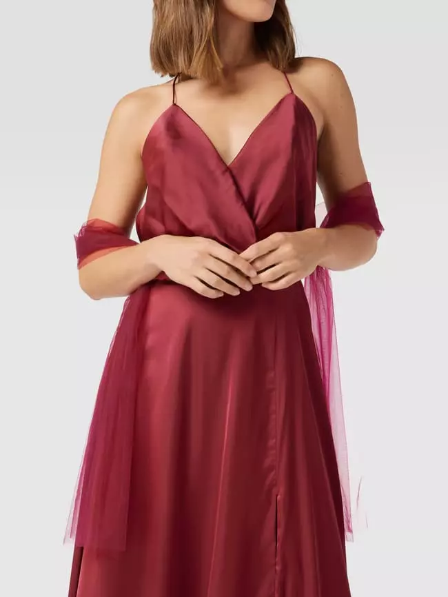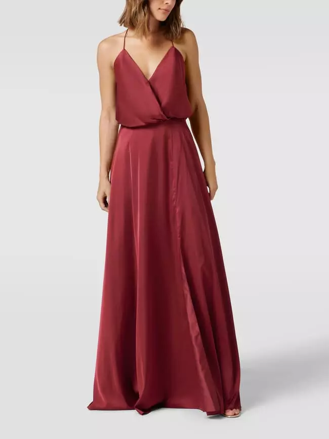 Das Abendkleid von unique ist aus strapazierfähigem Material gefertigt und tailliert geschnitten. Es zeigt sich mit V-Ausschnitt in Wickel-Optik, Spaghettiträgern sowie hohem Schlitz auf der Vorderseite.