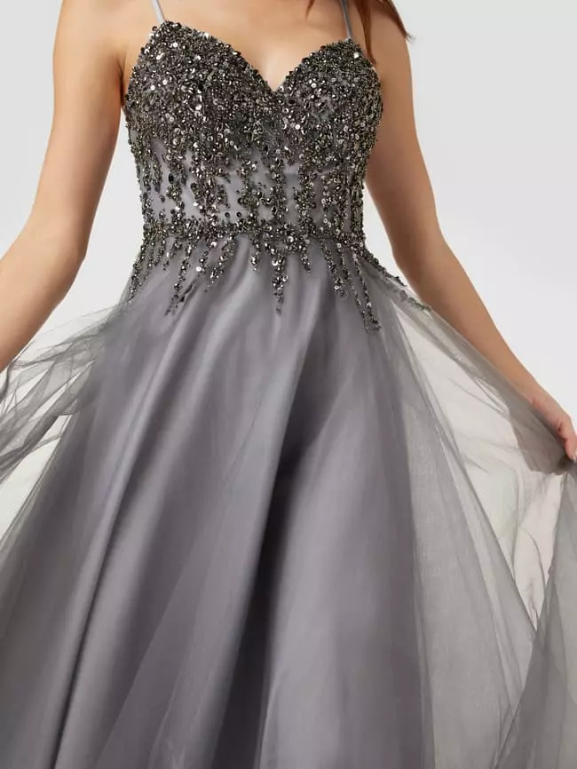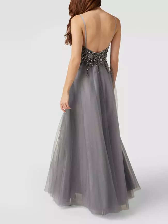 Unique Abendkleid Mit Ziersteinen Und Pailletten – Rauchblau
