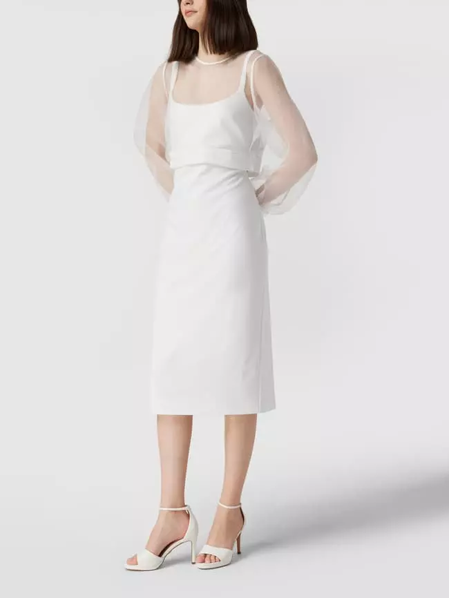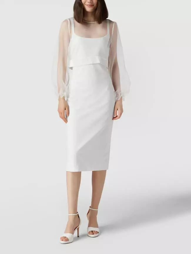 V.M. Cocktailkleid Mit Transparentem Oberteil – Offwhite